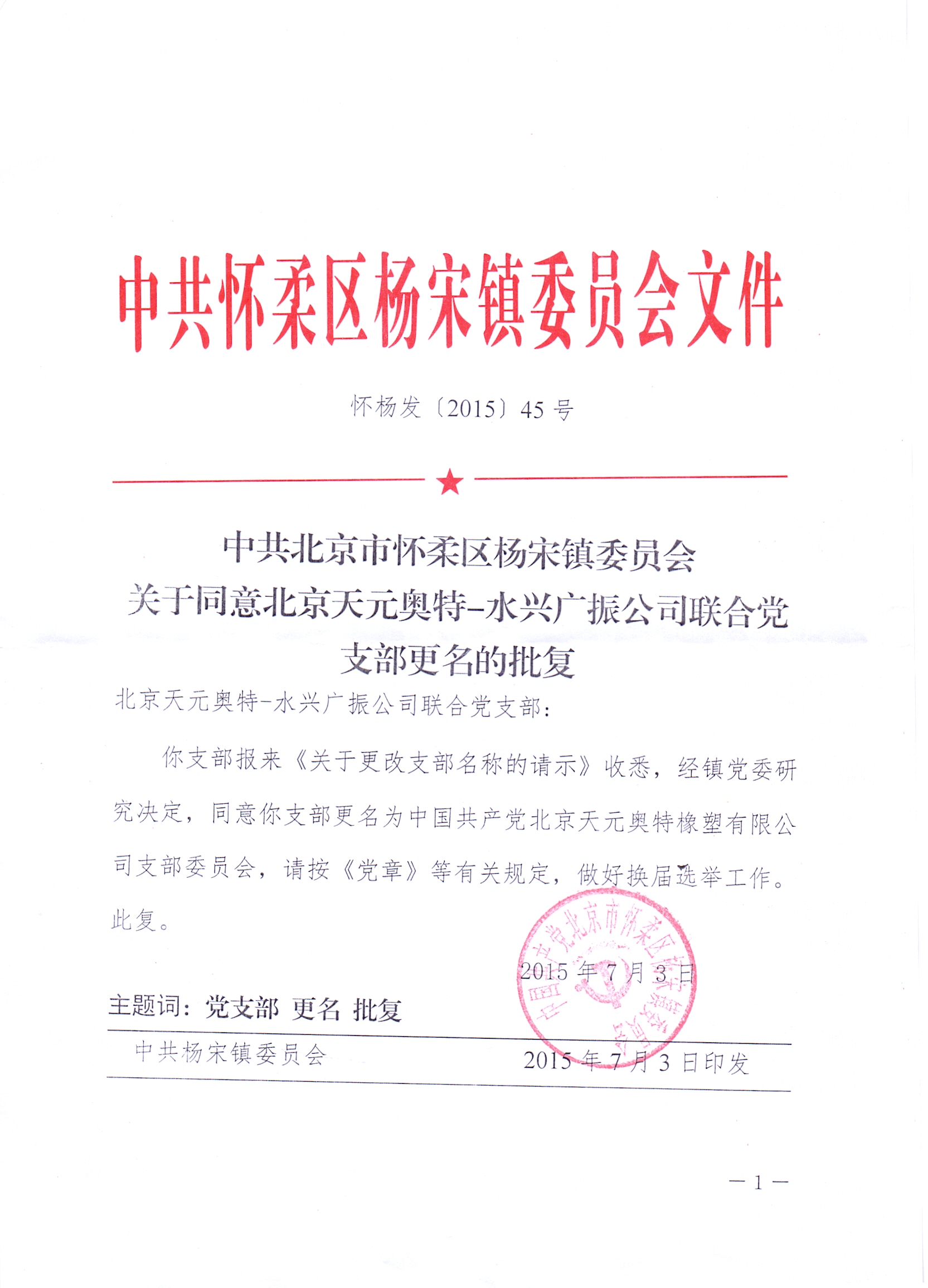 中国共产党北京天元奥特橡塑有限公司支部委员会成立