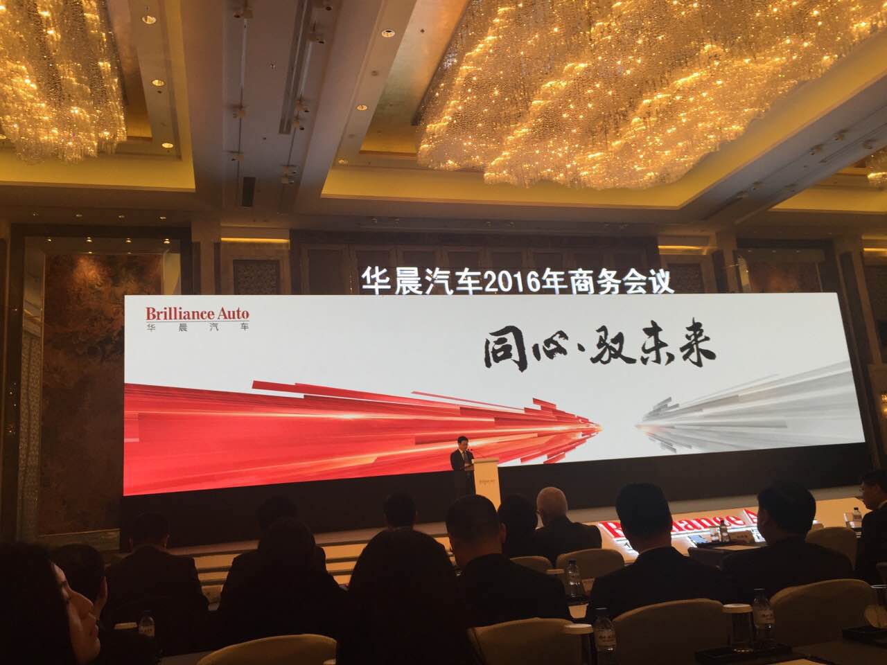 主题为“同心·驭未来”华晨汽车2016年商务会议于2016年元月19日在沈阳召开。华晨汽车2015年产销宝马、华颂、金杯与中华品牌汽车90万台,实现销售收入1630亿元,行业排名第7名。
