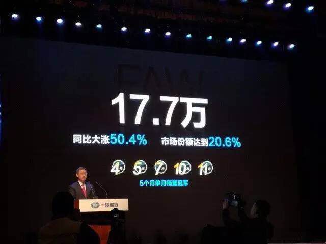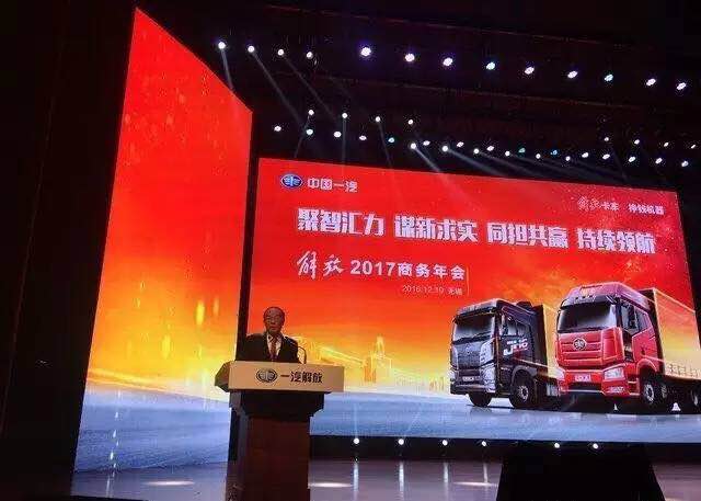 “聚智汇力、谋新求实、同担共赢、持续领航”,一汽解放商务年会于2017年12月19日在无锡正式拉开帷幕。2016年1-11月,一汽解放产销17.7万辆,增幅达50.4%,销量增速为行业的2倍,领衔11个省市的市场份额,实现7个万台大省,河北山东销量均突破2万台,稳居中重卡行业第一。2017,一汽解放制定了整体销量挑战22.7万辆的销售目标,市场份额要达到20.5%。
